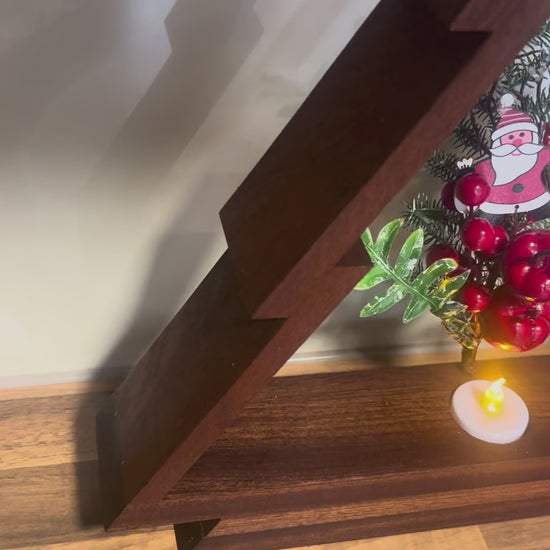 Handcrafted Wooden Christmas Tree | Christmas Decor | Flickering LED Tealight